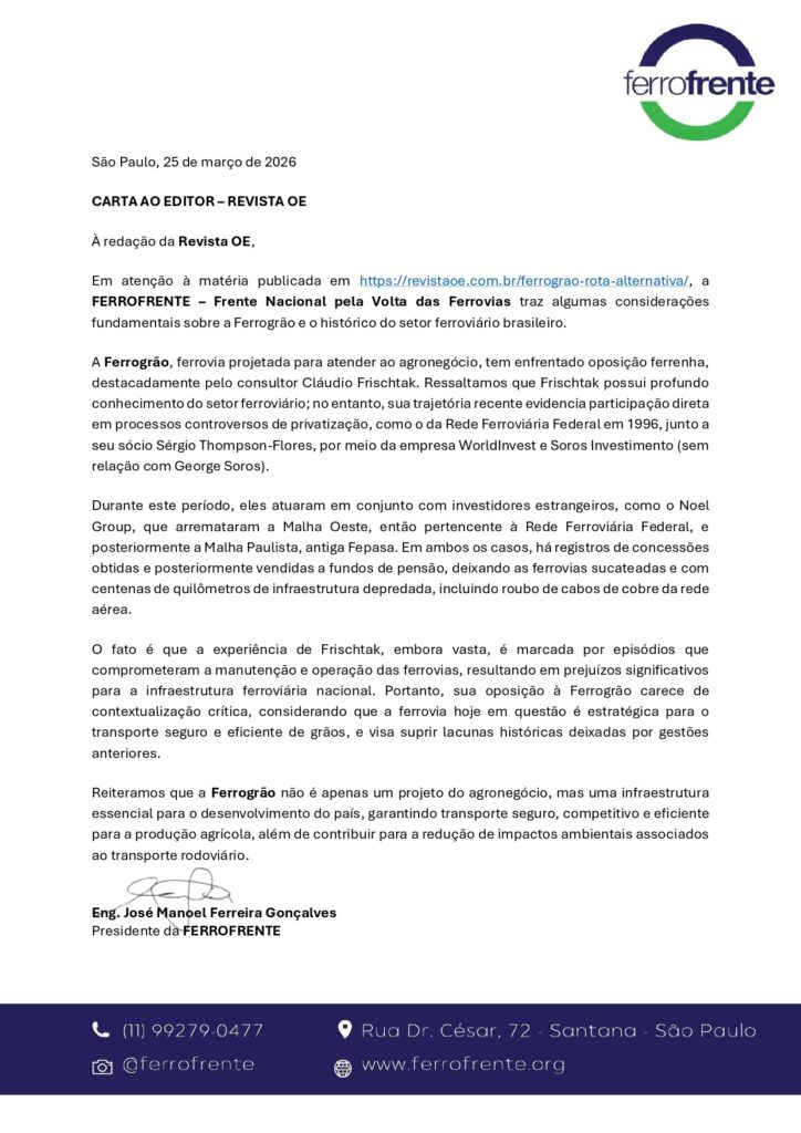 A FERROFRENTE reafirma a importância do debate técnico e transparente sobre grandes projetos de infraestrutura, defendendo que diferentes visões sejam analisadas de forma crítica, com base em informações completas e no interesse público.